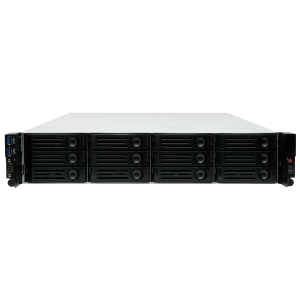 Корпус оснащён 12 сменными лотками для 3,5-дюймовых жестких дисков спереди и 2 сменными лотками для 2,5-дюймовых накопителей сзади. Такая конфигурация обеспечивает гибкость и удобство в организации хранилища. На передней панели расположены 2 порта USB 3.0, обеспечивающие быстрый доступ для подключения периферийных устройств и обмена данными.
