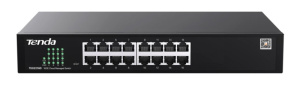 Внутренняя пропускная способность коммутатора Tenda TEG2216D – 32 Гбит/с. Показатель позволяет одновременно использовать все порты в режиме полного дуплекса. Размер таблицы MAC адресов составляет 8000 записей. Технология приоритизации QoS повышает эффективность распределения трафика. Безопасность коммутатора усилена защитой от сетевых штормов. Благодаря отсутствию вентиляторов устройство работает бесшумно.