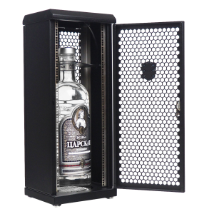 Шкаф серверный сувенирный представляет собой уменьшенную копию шкафа ЦМО. Выполнен из металла, перфорация дверей шкафа повторяет перфорацию полноразмерных шкафов. Внутри сувенирного шкафа предусмотрено крепление для фиксации бутылки большинства стандартных размеров. Максимальная высота бутылки – 36 см.
