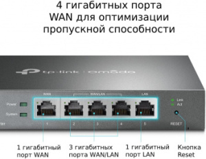 Устройство оснащено четырьмя гигабитными портами LAN/WAN, каждый из которых автоматически определяет свою роль. Это позволяет легко организовать резервирование каналов и подключение к нескольким провайдерам, обеспечивая стабильную работу даже при сбоях. TP-Link ER605 поддерживает до трёх WAN-подключений. В режиме Load Balancing маршрутизатор распределяет трафик между провайдерами, а при необходимости — автоматически переключается на резервный канал, сохраняя доступ к сети без перебоев.